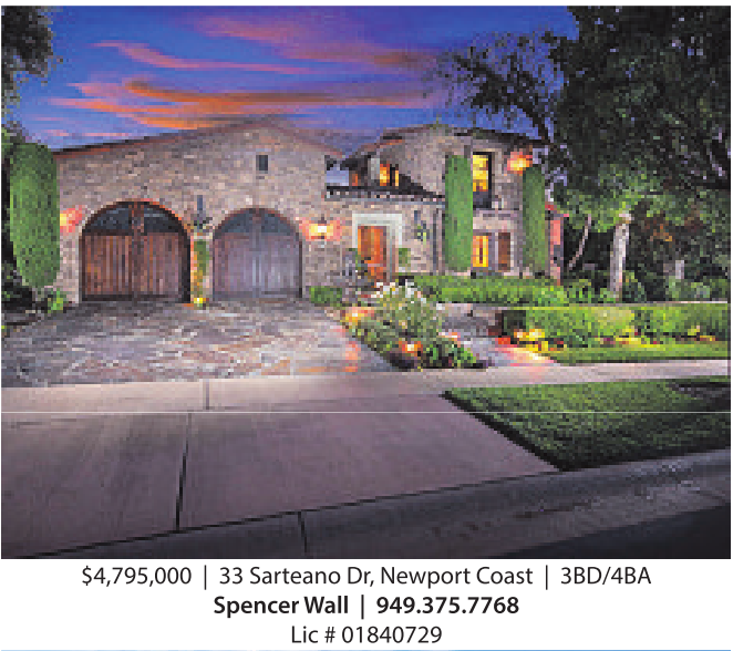 $4,795,000 | 33Sarteano Dr,Newport Coast | 3BD/4BA Spencer Wall