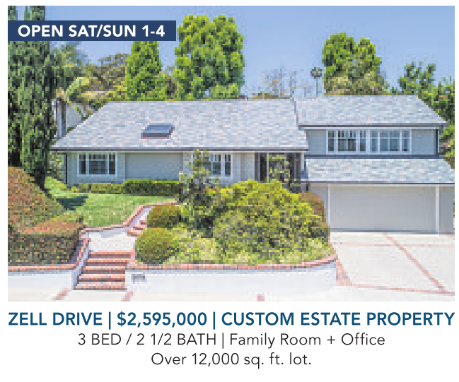 ZELL DRIVE | $2,595,000 | CUSTOM ESTATE PROPERTY 3 BED / 2 1/2 BATH | Family Room + Office Over 12,000 sq. ft. lot.