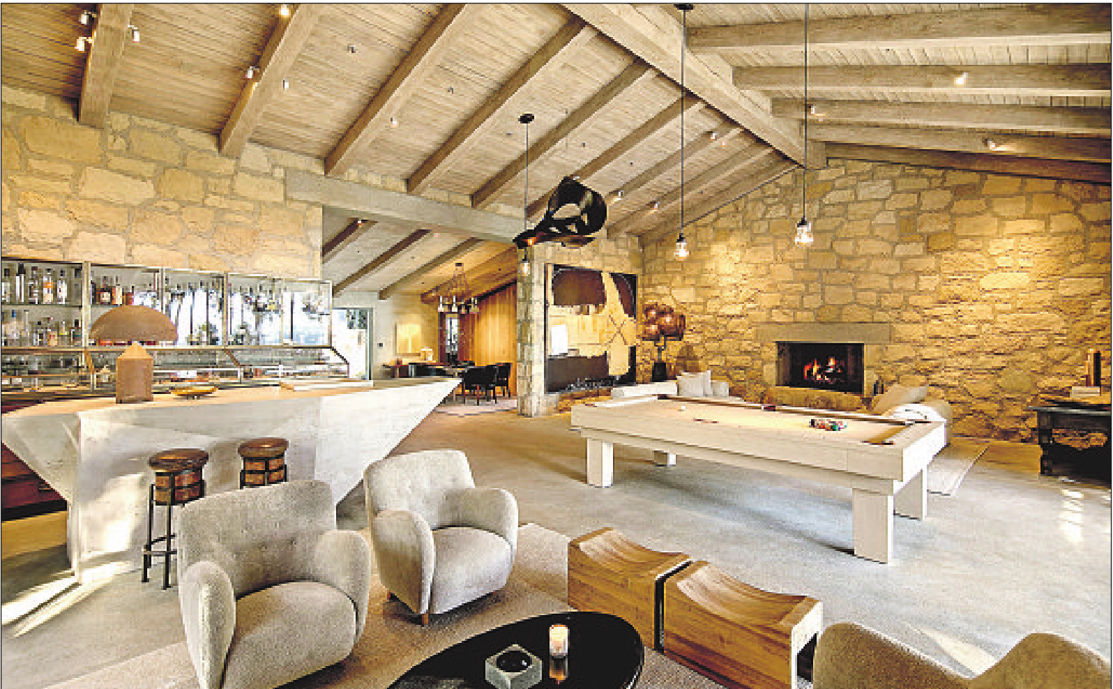 Accompanying the main house is an indoor-outdoor pool house that was built by DeGeneres and De Rossi during their ownership. Stone excavated from the property was used to build the secondary structure, named Jordan Hall, which has a sunroom, an outdoor kitchen and a wet bar.