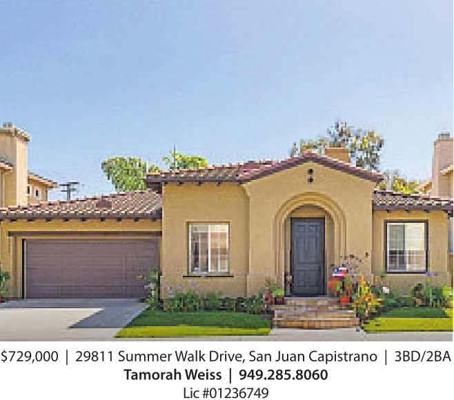 $729,000 | 29811 Summer Walk Drive, San Juan Capistrano | 3BD/2BA Tamorah Weiss | 949.285.8060 Lic #01236749