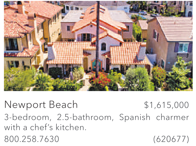 Newport Beach $1,615,000 3-bedroom, 2.5-bathroom, Spanish charmer with a chef’s kitchen.