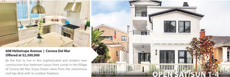 608 Heliotrope Avenue | Corona Del Mar Offered at $2,300,000 Be the first to live in this sophisticated and modern new construction four bedroom luxury front condo in the Village of Corona del Mar. Enjoy Ocean views from the voluminous roof top deck with its outdoor fireplace. OPEN SAT/SUN 1-4