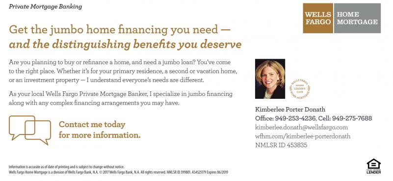 Kimberlee Porter Donath Office: 949-253-4236, Cell: 949-275-7688 kimberlee.donath@wellsfargo.com wfhm.com/kimberlee-porterdonath NMLSR ID 453835