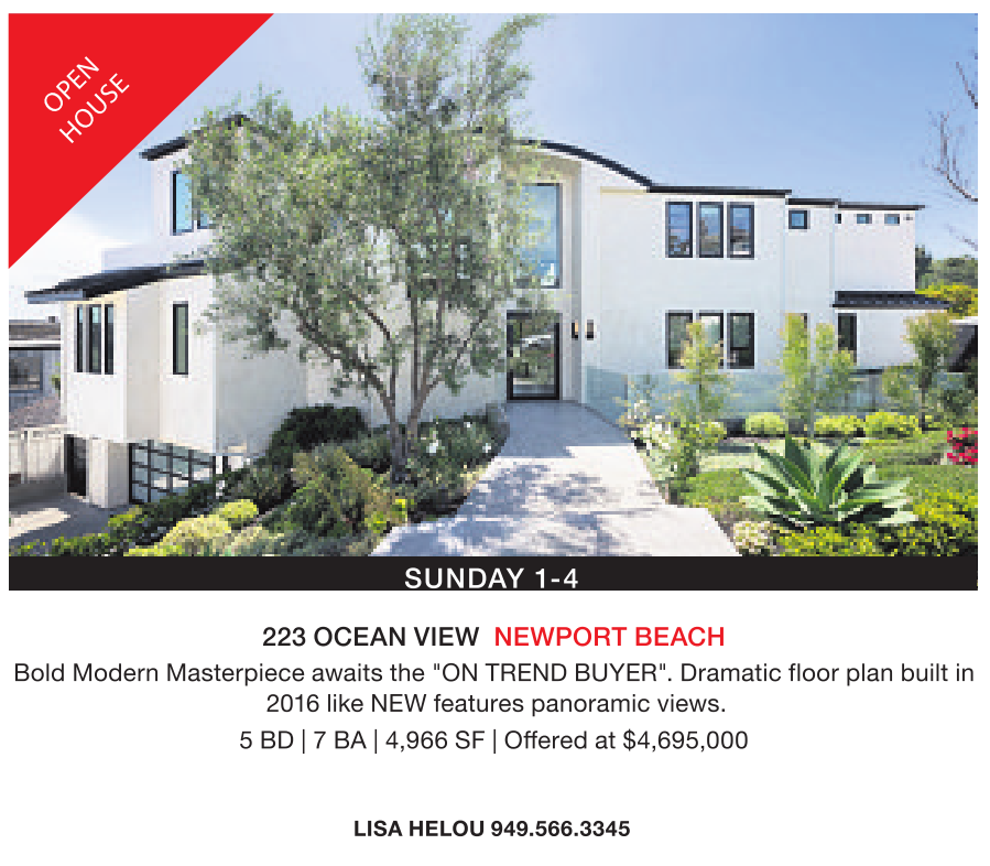 223 OCEAN VIEW NEWPORT BEACH Bold Modern Masterpiece awaits the "ON TREND BUYER". Dramatic floor plan built in 2016 like NEW features panoramic views.