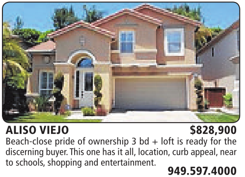 ALISO VIEJO $828,900 Beach-close pride of ownership 3 bd + loft is ready for the discerning buyer.This one has it all, location, curb appeal, near to schools,shopping and entertainment. 949.597.4000