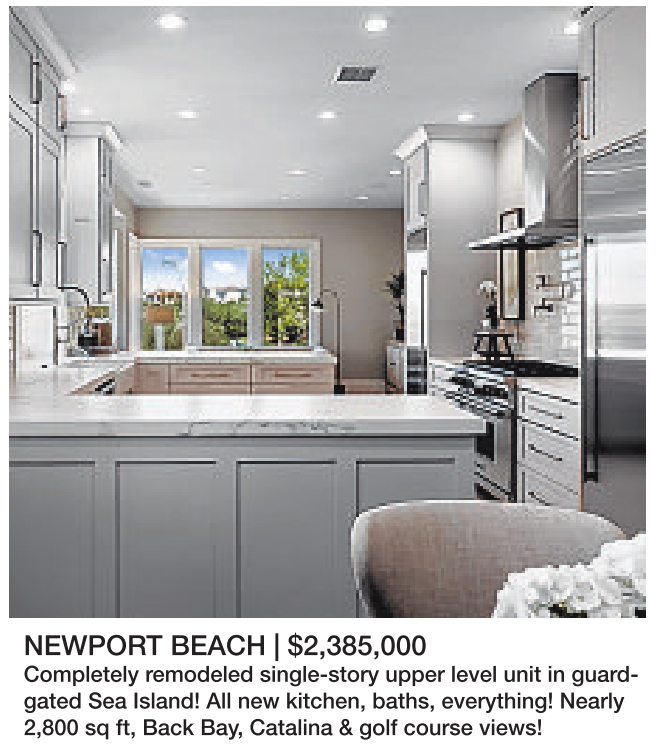 NEWPORT BEACH | $2,385,000 Completely remodeled single-story upper level unit in guardgated Sea Island! All new kitchen, baths, everything! Nearly 2,800 sq ft, Back Bay, Catalina & golf course views!