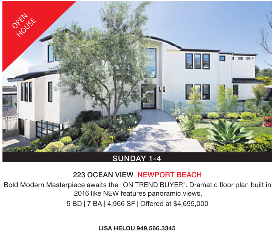 223 OCEAN VIEW NEWPORT BEACH Bold Modern Masterpiece awaits the "ON TREND BUYER". Dramatic floor plan built in 2016 like NEW features panoramic views.