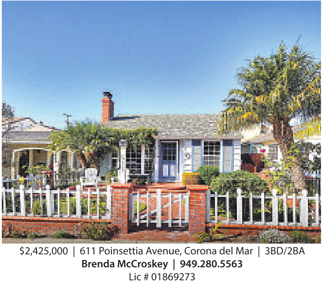 $2,425,000 | 611 Poinsettia Avenue,Corona del Mar | 3BD/2BA Brenda McCroskey | 949.280.5563 Lic #01869273