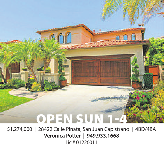 $1,274,000 | 28422 CallePinata, San Juan Capistrano | 4BD/4BA Veronica Potter | 949.933.1668 Lic #01226011