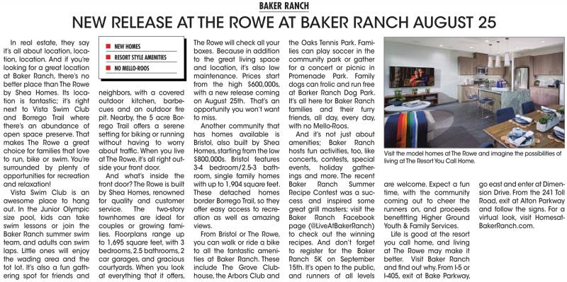 NEW RELEASE AT THE ROWE AT BAKER RANCH AUGUST 25