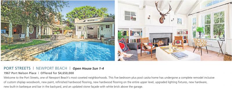 PORT STREETS | NEWPORT BEACH | Open House Sun 1-4 1967 Port Nelson Place | Offered for $4,650,000 Welcome to the Port Streets, one of Newport Beach’s most coveted neighborhoods. This five bedroom plus pool casita home has undergone a complete remodel inclusive of custom shiplap woodwork, new paint, refinished hardwood flooring, new hardwood flooring on the entire upper level, upgraded lighting fixtures, new hardware, new built-in barbeque and bar in the backyard, and an updated stone façade with white brick above the garage.