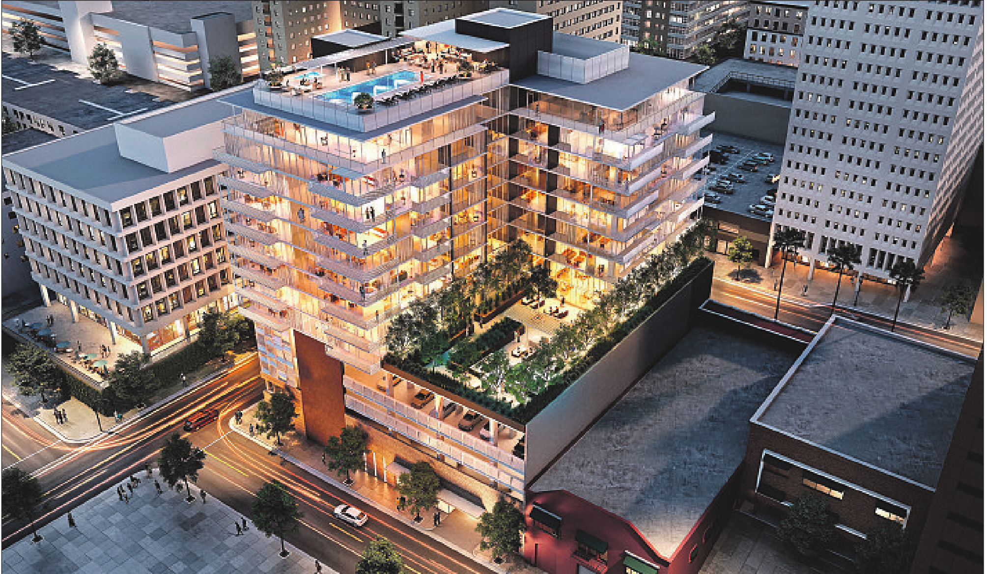Oberholzer’s planned downtown City West project has 140 condominiums spread across 14 stories with both inset outdoor rooms and projected balconies. Sizes top out at a 30-foot-wide expanse and 8-foot depth. Developed by PacTen Partners, the 1150 Wilshire Blvd. project, awaiting city approval, is expected to begin construction next year.