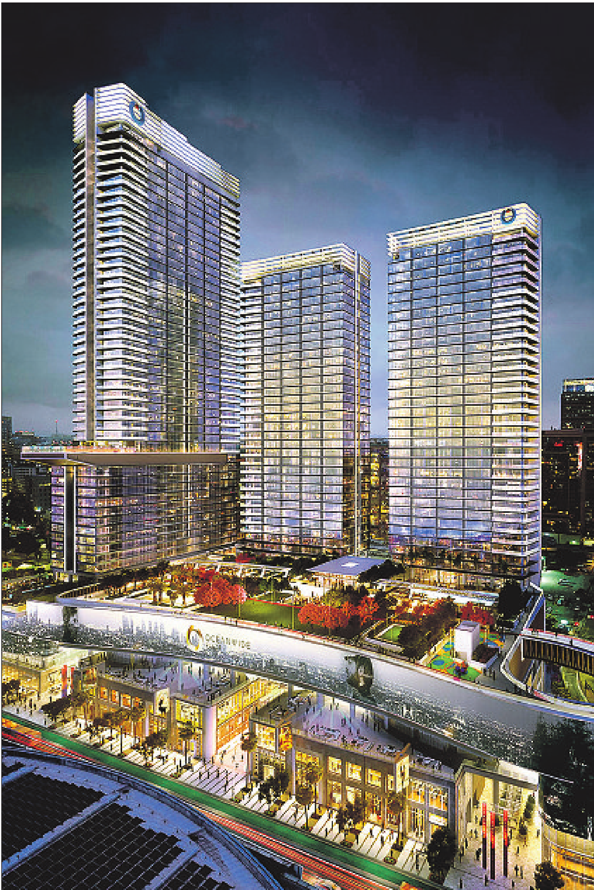 The three-tower development, which reaches 53 stories, has 504 condominiums and includes a Park Hyatt hotel and retail and event complexes. The Callison- RTKL-designed project will open in early 2020.