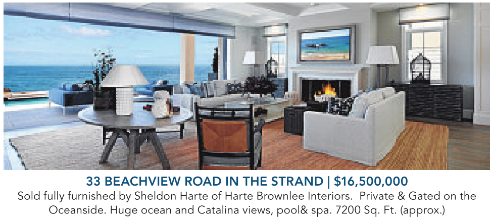 33 BEACHVIEW ROAD IN THE STRAND | $16,500,000 Sold fully furnished by Sheldon Harte of Harte Brownlee Interiors. Private & Gated on the Oceanside. Huge ocean and Catalina views, pool& spa. 7200 Sq. Ft. (approx.)