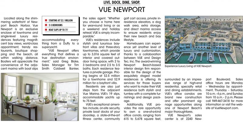 “VUE Newport offers everything that defines a true destination environment,” said Greg Blake, Sales Manager for Tim Smith Coldwell Banker,