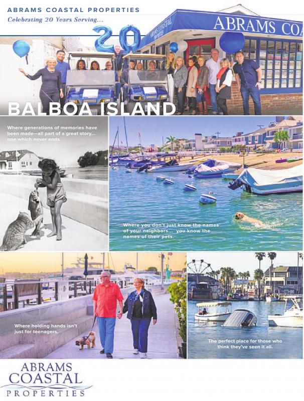 A B R A M S C OA S TA L P R O P E R T I E S B A L B OA I S L A N D Where generations of memories have been made—all part of a great story... one which never ends. Where holding hands isn’t just for teenagers. Where you don’t just know the names of your neighbors... you know the names of their pets. The perfect place for those who think they’ve seen it all.