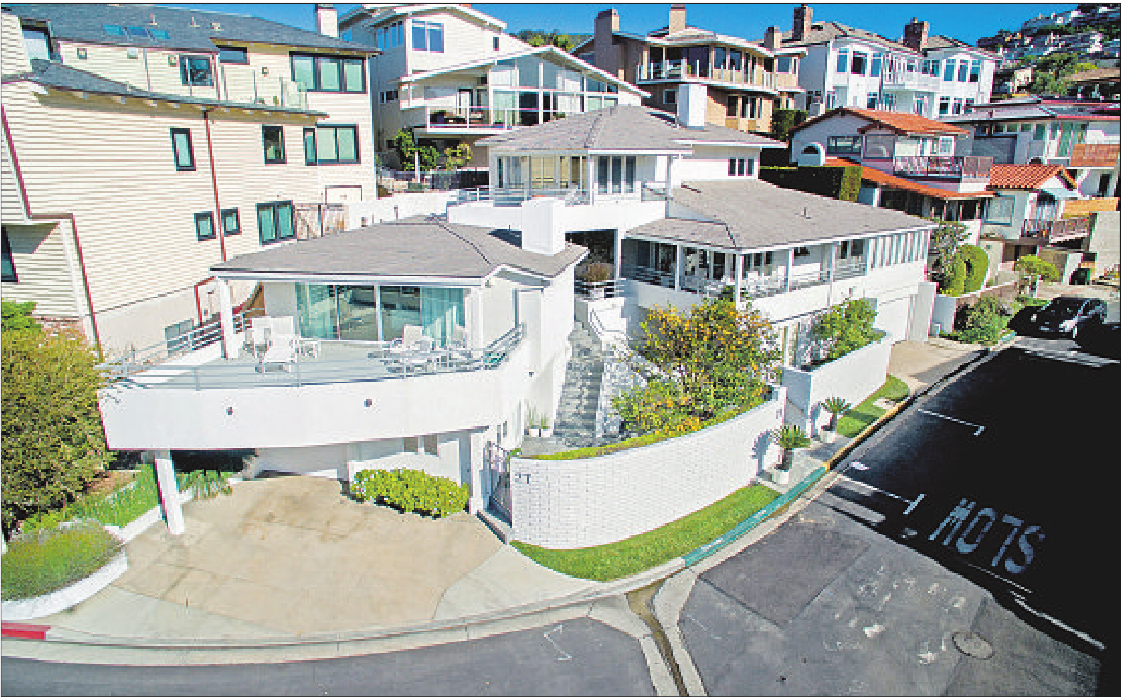 The multilevel home, built in 1936 and since remodeled, takes in ocean views from its corner lot in the Emerald Bay area.