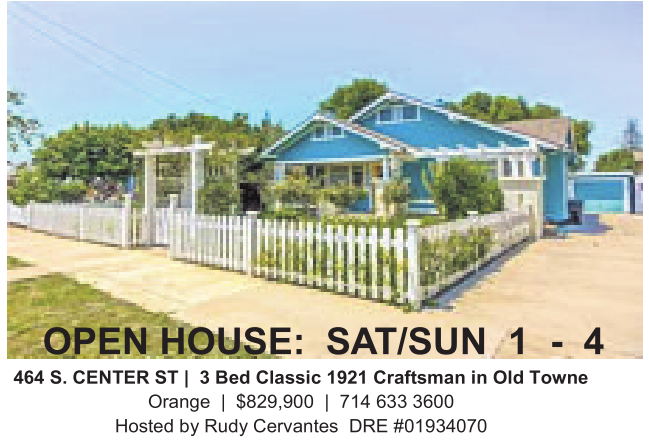 464 S. CENTER ST | 3 Bed Classic 1921 Craftsman in Old Towne Orange | $829,900 | 714 633 3600 Hosted by Rudy Cervantes DRE #01934070