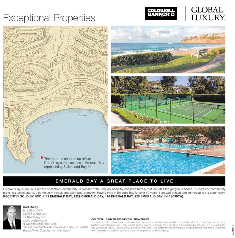 Rod Daley 949.395.1091 CalRE# 00456990 rod@roddaley.com www.roddaley.com Newport Beach Fashion Island “Rod has represented more buyers and sellers in Emerald Bay and Irvine Cove than any other agent.”