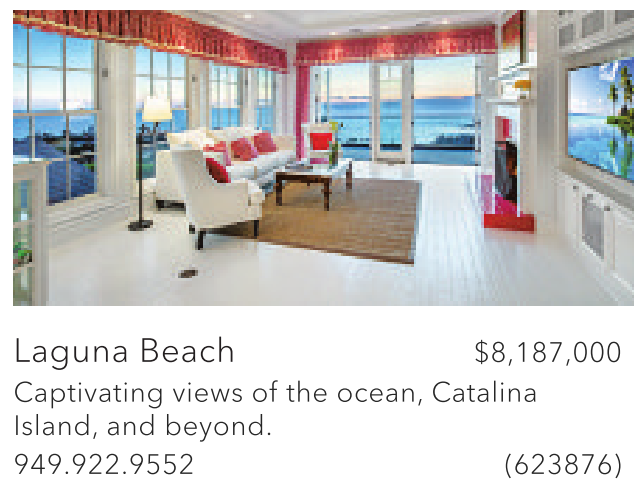 Laguna Beach $8,187,000 Captivating views of the ocean, Catalina Island, and beyond.