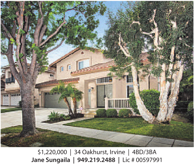 $1,220,000 | 34Oakhurst, Irvine | 4BD/3BA Jane Sungaila | 949.21