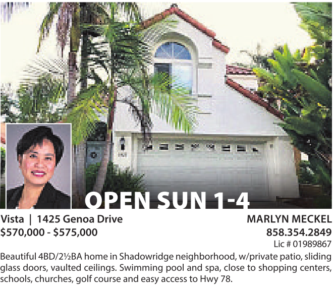 Vista | 1425 GenoaDrive MARLYN MECKEL $570,000 -$575,000 858.354.2849 Lic #01989867