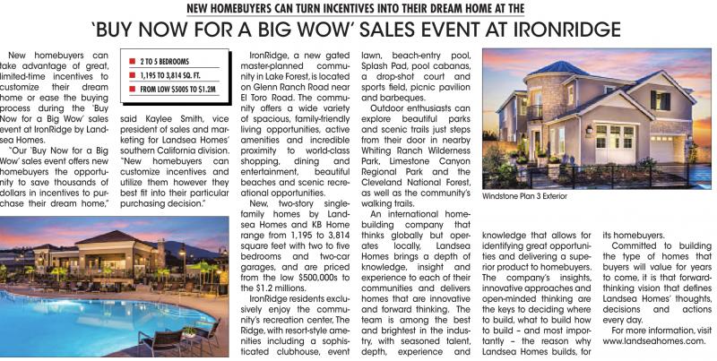 “Our ‘Buy Now for a Big Wow’ sales event offers new homebuyers the opportunity to save thousands of dollars in incentives to purchase their dream home,”