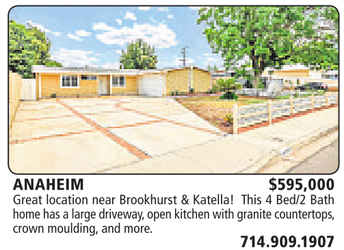 ANAHEIM $595,000 Great location near Brookhurst &Katella! This 4Bed/2 Bath home has alarge driveway,open kitchen with granitecountertops, crown moulding, and more.