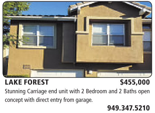 LAKE FOREST $455,000 Stunning Carriage end unit with 2Bedroom and 2Baths open concept with direct entry from garage.