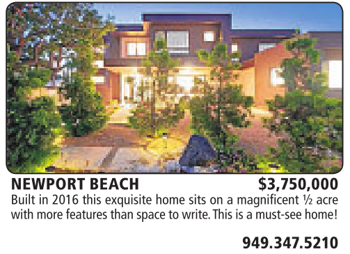 NEWPORT BEACH $3,750,000 Built in 2016 this exquisite home sits on amagnificent ½acre with more features than space to write.This is amust-see home!