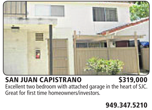 SAN JUAN CAPISTRANO $319,000 Excellent two bedroom with attached garage in the heart of SJC. Greatfor firsttime homeowners/investors.