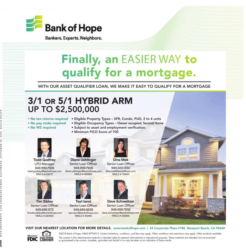 ©2018 Bank of Hope, NMLS #794513. Certain limitations, conditions, and fees may apply. Other conditions and restrictions may apply. Other products available.