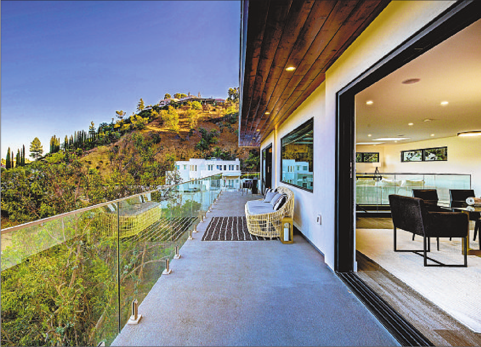 Centered on eastern canyon views in the Hollywood Hills, this reimagined contemporary-style home personifies the saying “business up front, party in the back.”