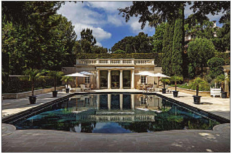 Under Perenchio’s direction, the limestone-clad residence was enhanced and restored by designer Henri Samuel and architect Pierre Barbe. Evoking an 18th century chateau, the home boasts scaled formal rooms, a ballroom, a wine cellar and a paneled dining room.