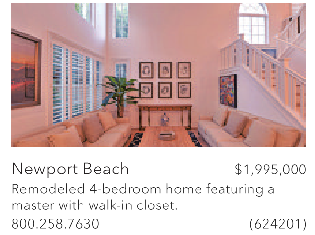 Newport Beach $1,995,000 Remodeled 4-bedroom home featuring a master with walk-in closet.