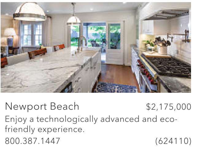 Newport Beach $2,175,000 Enjoy a technologically advanced and ecofriendly experience.