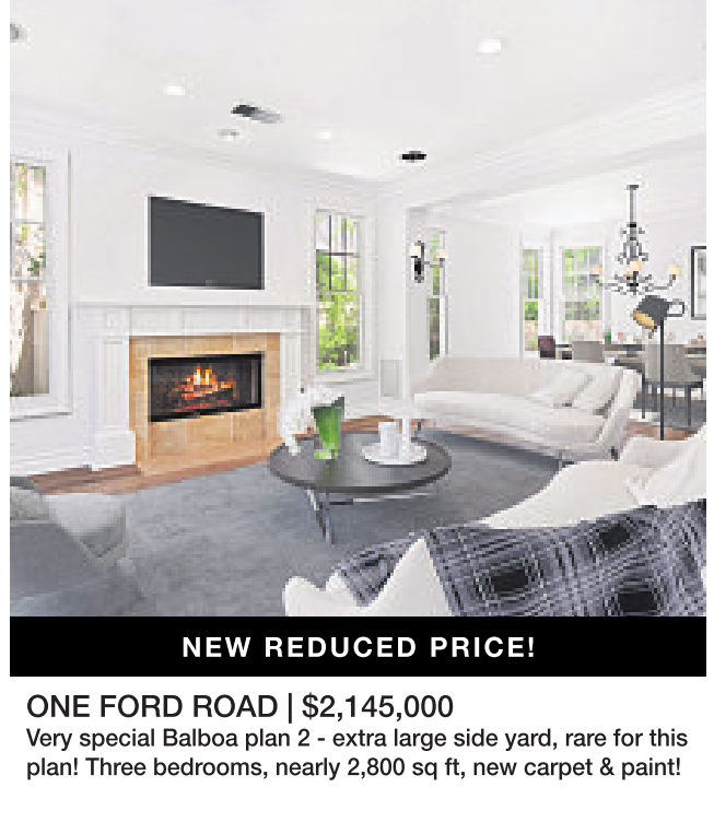ONE FORD ROAD | $2,145,000 Very special Balboa plan 2 - extra large side yard, rare for this plan! Three bedrooms, nearly 2,800 sq ft, new carpet & paint!