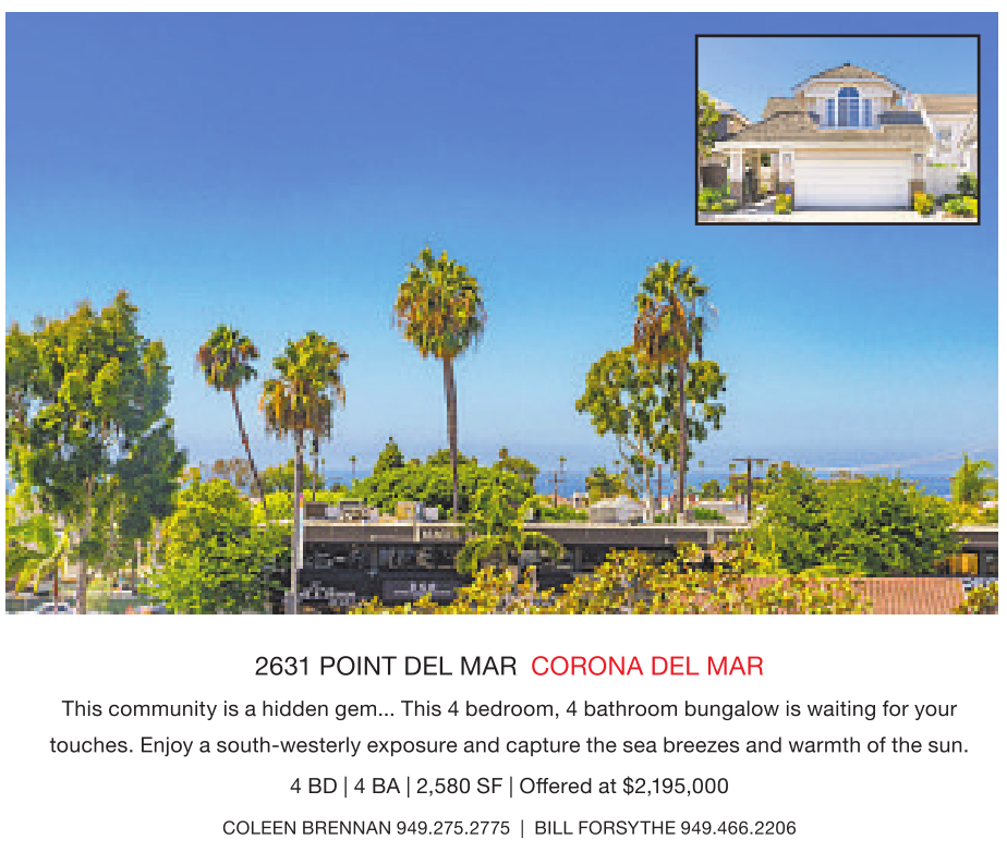 2631 POINT DEL MAR CORONA DEL MAR This community is ahidden gem... This 4bedroom, 4bathroom bungalow iswaiting for your touches. Enjoy asouth-westerly exposure and capture the sea breezes and warmth of the sun.