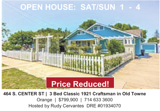 464 S. CENTER ST | 3 Bed Classic 1921 Craftsman in Old Towne Orange | $799,900 | 714 633 3600 Hosted by Rudy Cervantes DRE #01934070
