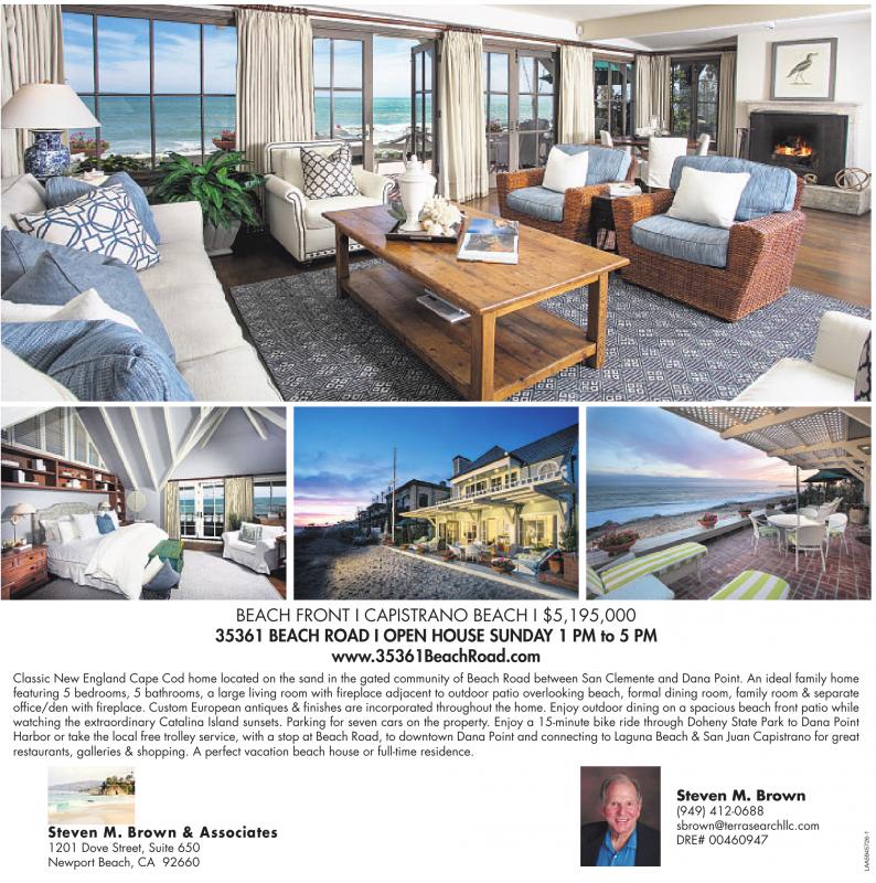 BEACH FRONT I CAPISTRANO BEACH I $5,195,000 35361 BEACH ROAD I OPEN HOUSE SUNDAY 1 PM to 5 PM www.35361BeachRoad.com