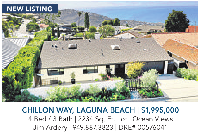 CHILLON WAY, LAGUNA BEACH | $1,995,000 4 Bed / 3 Bath | 2234 Sq, Ft. Lot | Ocean Views Jim Ardery | 949.887.3823 | DRE# 00576041