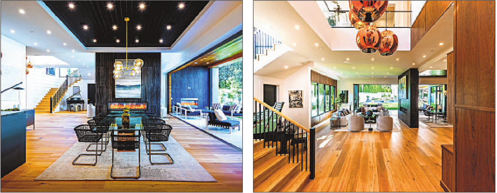 Features: Vaulted ceilings; marble, stone and wood finishes; modern fixtures; pocketing glass doors; grand foyer; chef’s kitchen with two islands; elevator; guest house; 3,000-square-foot rooftop deck; three-car garage with lift; zero-edge swimming pool and spa