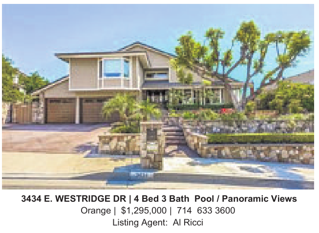 3434 E. WESTRIDGE DR |4Bed 3Bath Pool /Panoramic Views Orange | $1,295,000 | 714 633 3600 Listing Agent: AlRicci
