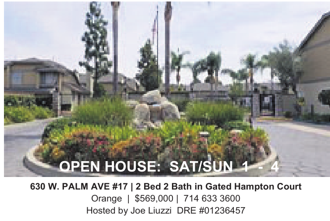 630 W. PALM AVE #17 |2Bed 2Bath inGated Hampton Court Orange | $569,000 | 714 633 3600 Hosted by Joe Liuzzi DRE #01236457