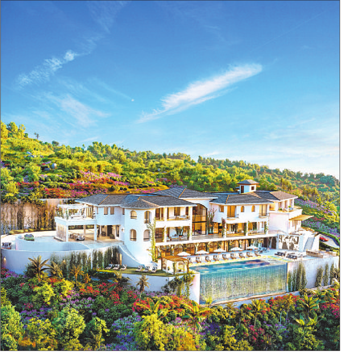In renderings, the palatial house offers a markedly different vibe from the ultramodern styles of other mega-listings around the city, such as Nile Niami’s Opus or Bruce Makowsky’s Billionaire. Here, arched doorways, indooroutdoor loggias and a black terracotta roof provide a more Mediterranean feel.