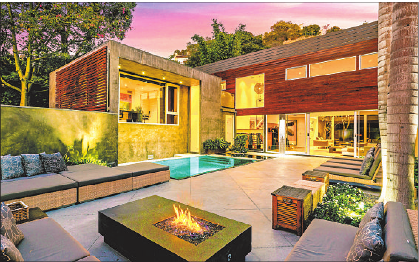 Set just above the Sunset Strip, the recently remodeled property pairs dark hardwood floors with custom built-ins across 2,418 square feet.