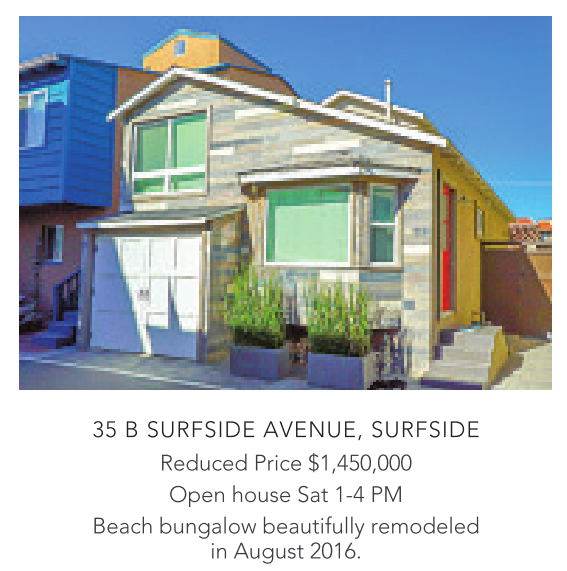Reduced Price $1,450,000 Open house Sat 1-4 PM Beach bungalow beautifully remodeled in August 2016.