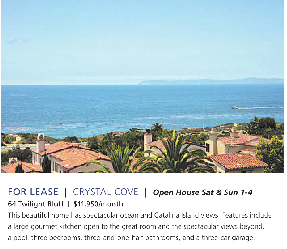 FOR LEASE | CRYSTAL COVE | Open House Sat & Sun 1-4