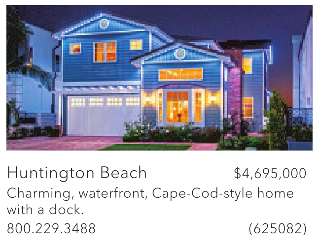 Huntington Beach $4,695,000 Charming, waterfront, Cape-Cod-style home with a dock.