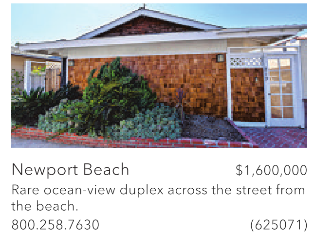Newport Beach $1,600,000 Rare ocean-view duplex across the street from the beach.